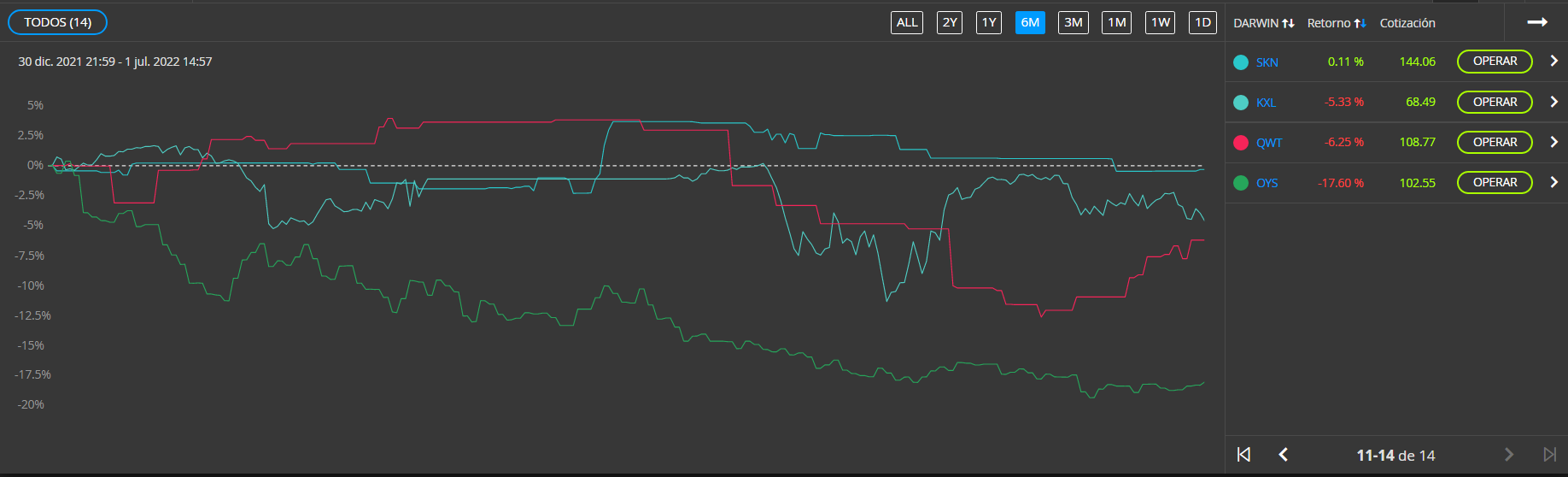 Termino junio y ya estamos en mitad de año, con 11 darwins en positivo y solo 3 en negativo, voy a poner las imagenes del grafico para que puedan verlo.