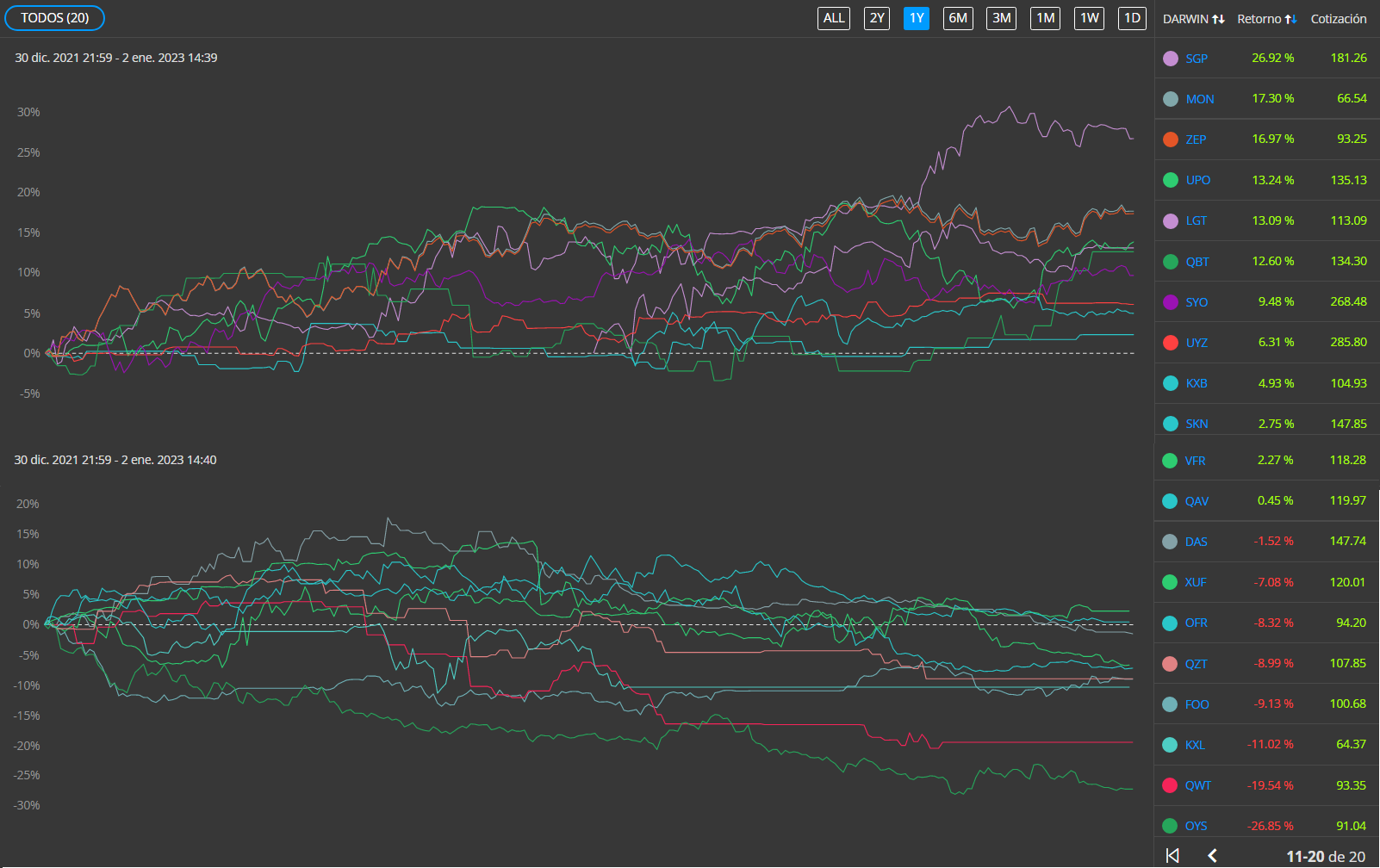 de estas 12 terminaron con saldo positivo y 8 con saldo negativo con solo 1 o 2 que fueron abandonadas (si no tienen movimientos durante el año que viene las sacare recien)