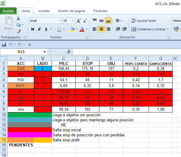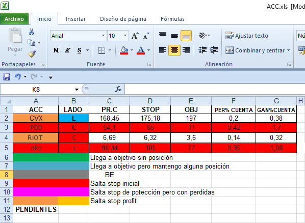 Buenos días, nuevas posiciones, y subo stop cvx.