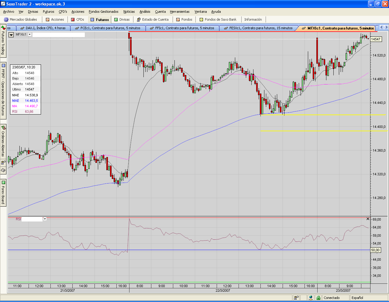 Nivel importante el ke intenta superar, los 14.557 , máximo de ayer.