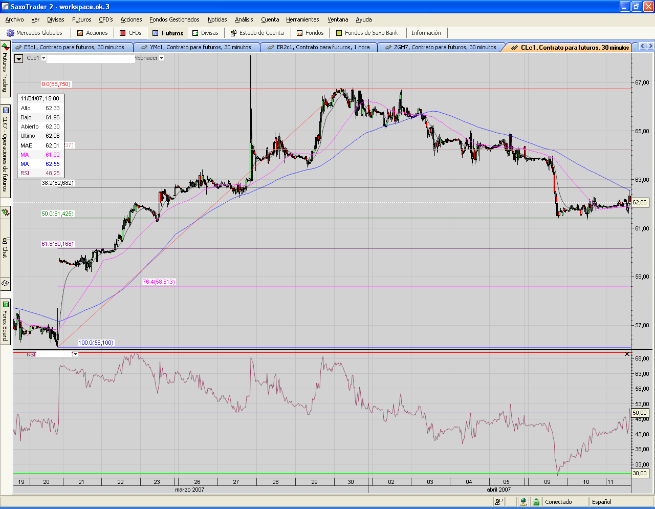 tras los datos de inventarios ha tocado su primera resistencia en los 62,55 y acto seguido se ha replegado. Vamos a ver si hay nuevos intentos de situar el precio por encima de los 62,60 y 63.