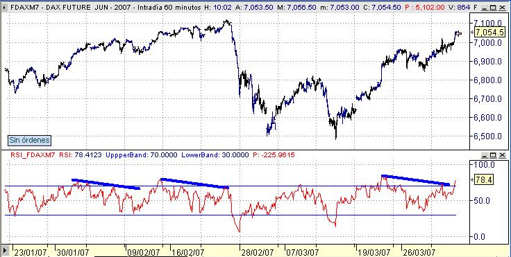 Tom sabemos que todo y mas en la bolsa es engañoso, pero mi experiencia en el Dax me dice que matinalmente los dias que una fuerte tendencia hace poco fructiferas las divergencias son pocos, aunque efectivamente haberlos los hay y seguramente seria mas provechoso aprovechar la tendencia en esos dias pero mis entradas con divergencias suelen ser con stops muy ajustados ( hoy eran 2 ptos) con los cual quien se resiste a probar sabiendo que puede haber bocado aunque sea pequeño, Un Saludo es como el refran de mujeres haberlas haylas . disfrutarlas es otra cuestion