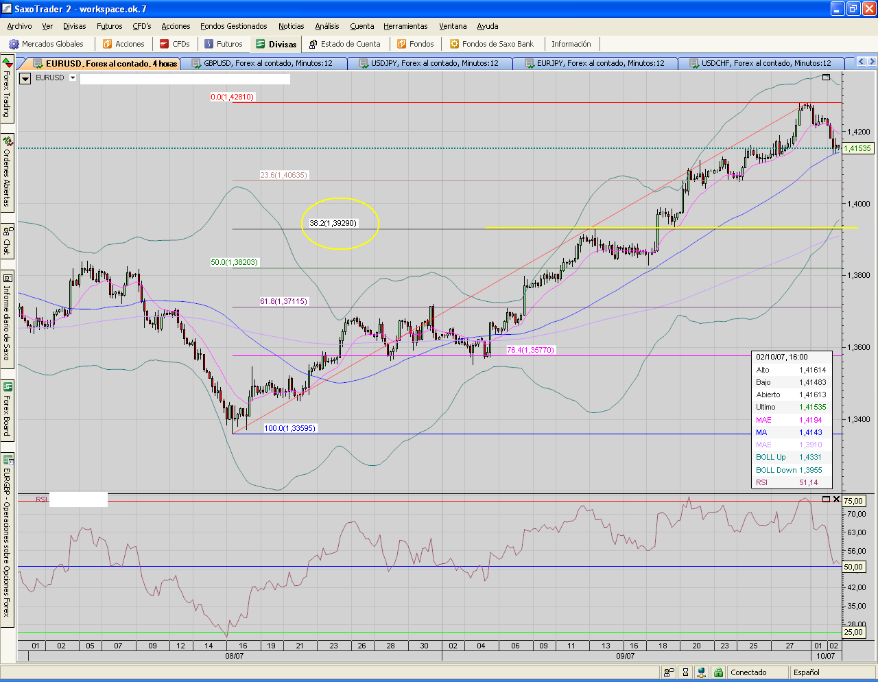 Yo creo que el euro lo pondrá más claro y será más interesante en la segunda fase de la corrección. La primera que le debe llevar a 1.4050 será lenta, la segunda en cambio que perforará el 1.4050 mucho más rápida.