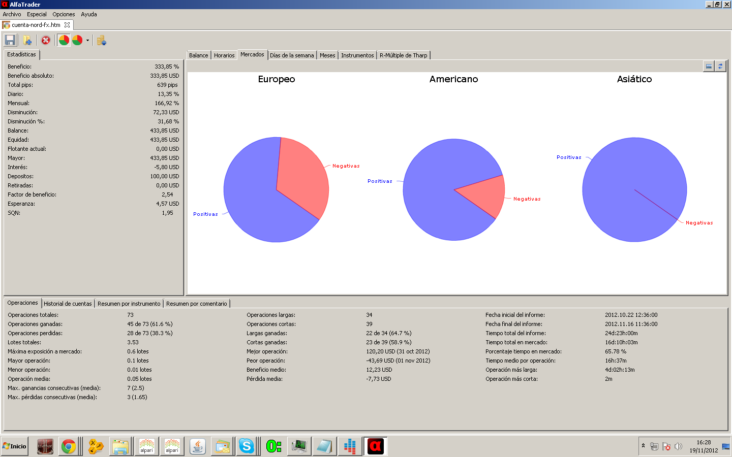 Bueno estas son las estadísticas del tema y todas las operaciones copiadas a un excel.