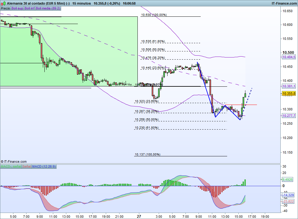 el dax marco reversal en 15minutos veremos como responde ante el mínimo de ayer