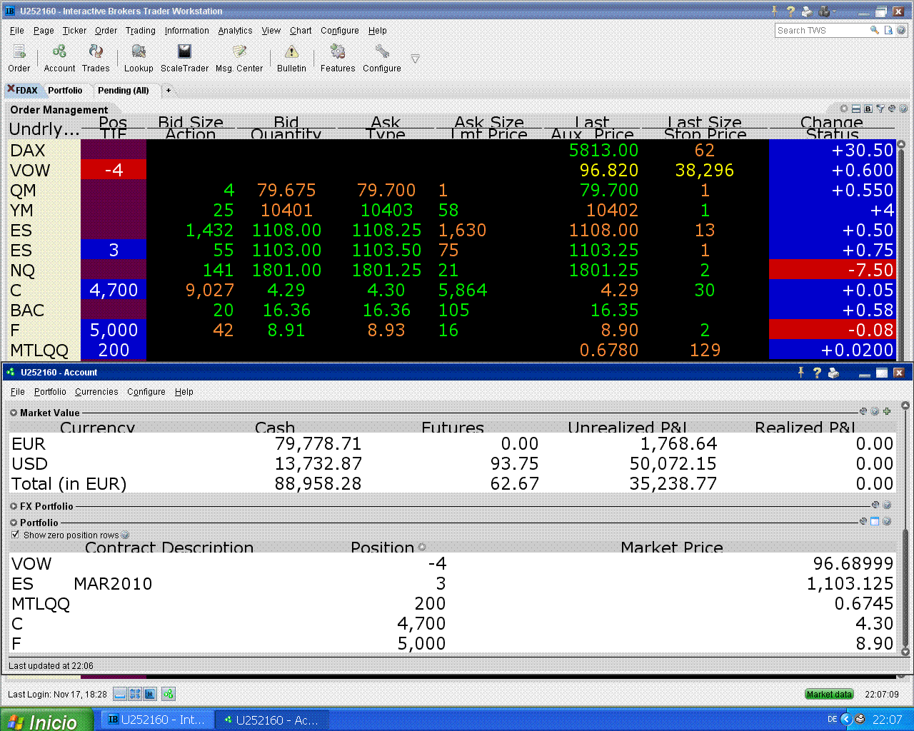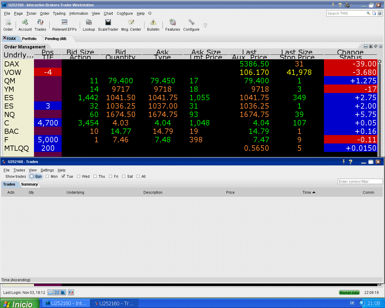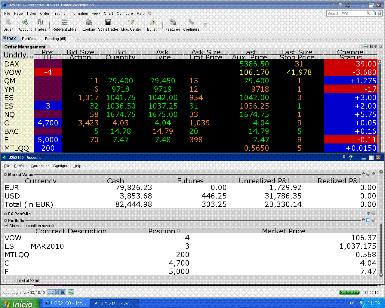 el viernes no pude colgar los extractos por falta de corriente eléctrica (yo vivo en una aldea en el monte), la verdad es que por el momento tampoco me hace mucha falta para operar, esto va bien y por mí puede seguir así.