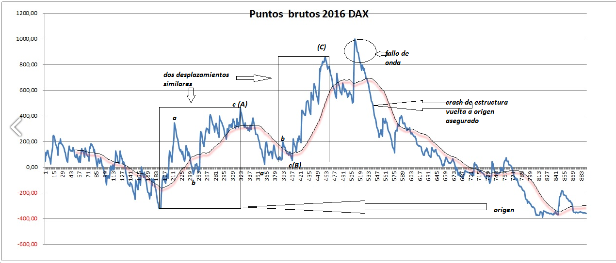 Y empezó el 2016, además con una fuerte tendencia bajista que hizo bajar al dax en pocas semanas un 20%. Aunque llevo en el trading ya mas de una década, todo aquello que esta antes del 2013 es como si no hubiera existido ya que desde entonces es cuando me he vuelto muy estudioso y metódico con mis entradas...y aunque vivi el 2008 que no me fue nada mal, no tiene que ver nada en como opero ahora y el nivel de detalle que tengo de todo lo que hago, asi que me puse a estudiar mas profundamente la nueva tendencia bajista con la que se inicio el año.Aunque ya tenia algunas entradas que iban y van perfectamente quise intentar buscar otras nuevas...y ahí es donde me he quedado estancado.