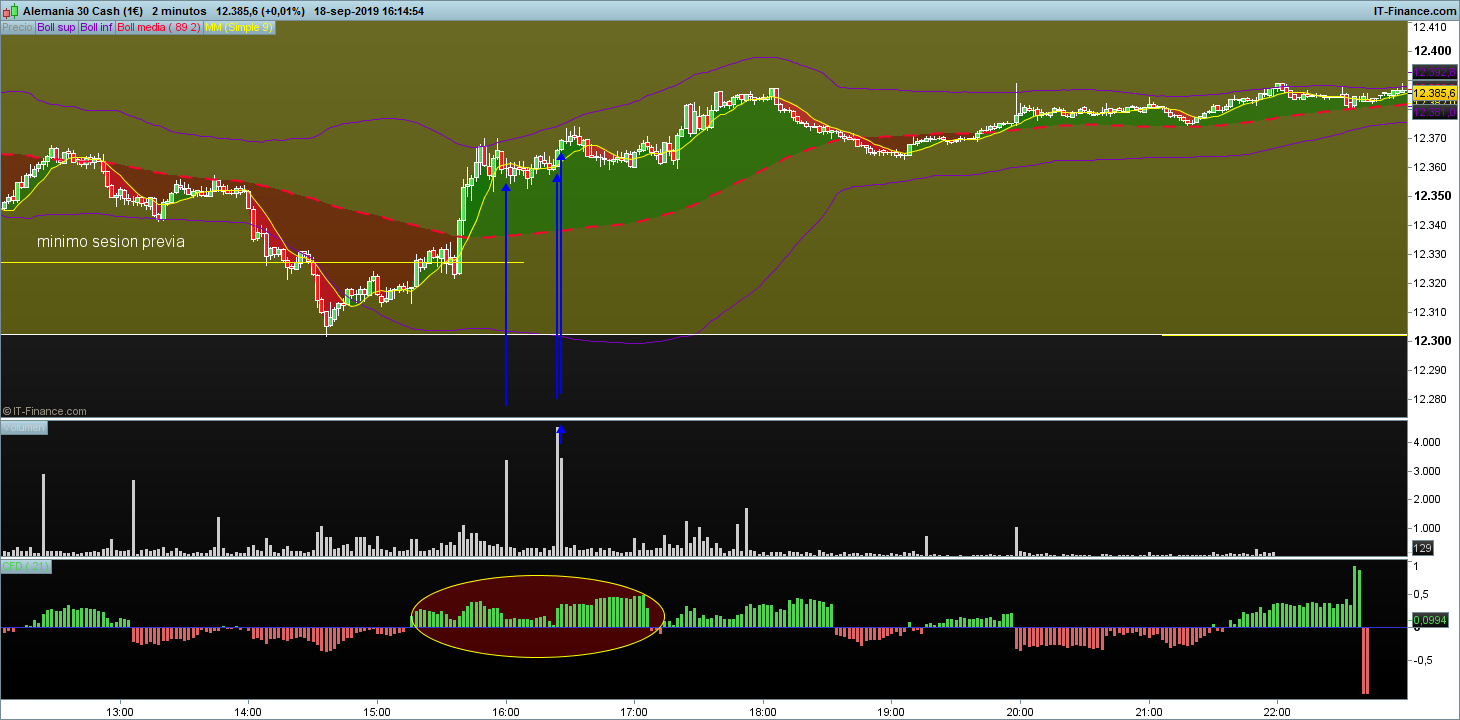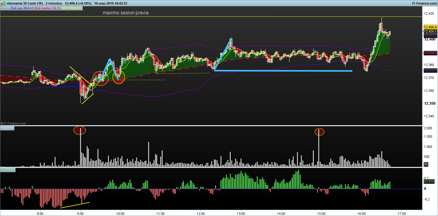 La vela que toca mínimos en 12302 a las 14,30, es una vela de absorción con volumen alto que mete al precio sobre el pivote