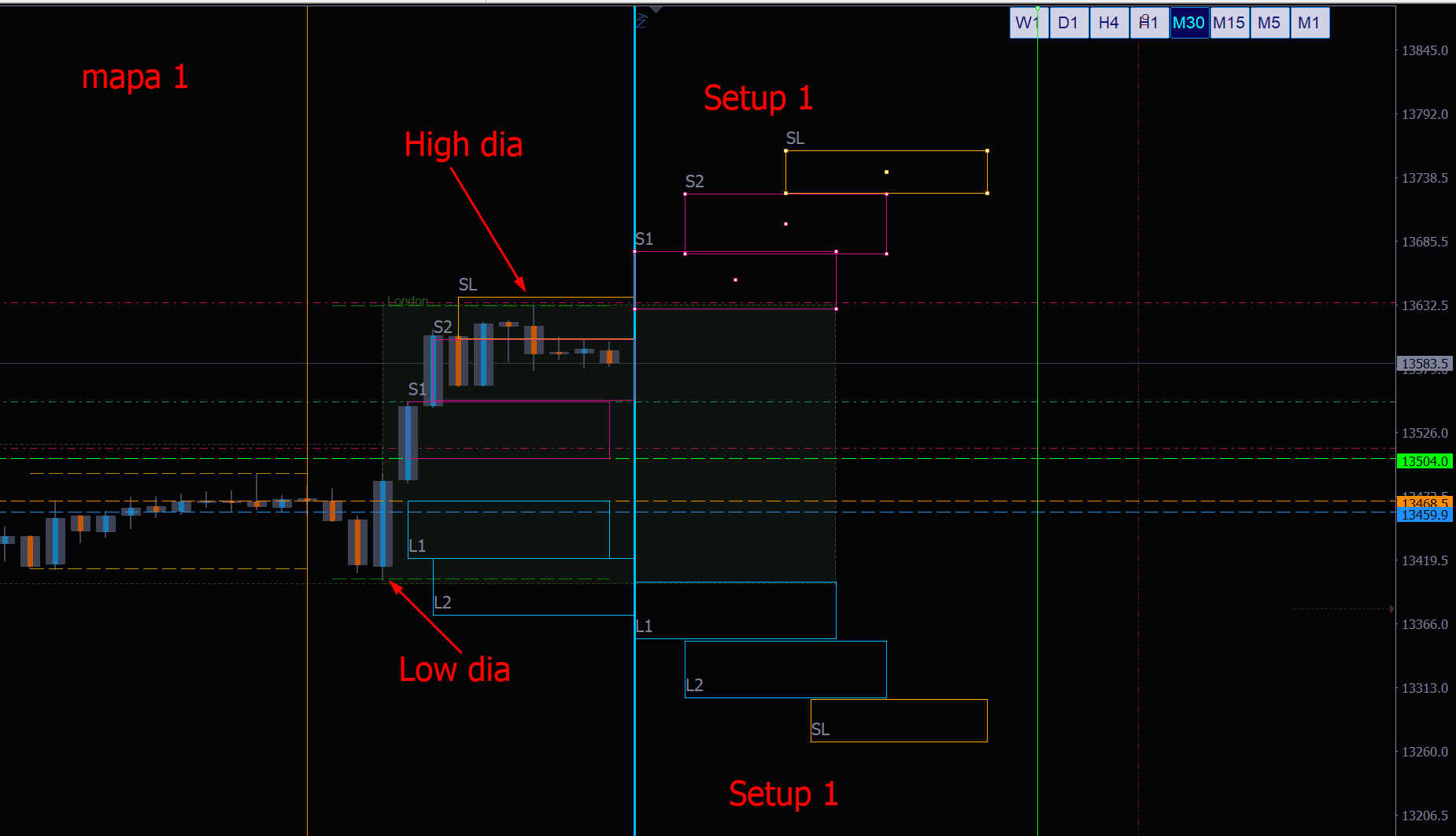 Pero no lo veo donde poner el Stop Loss del setup 2 (imagen mapa 2)