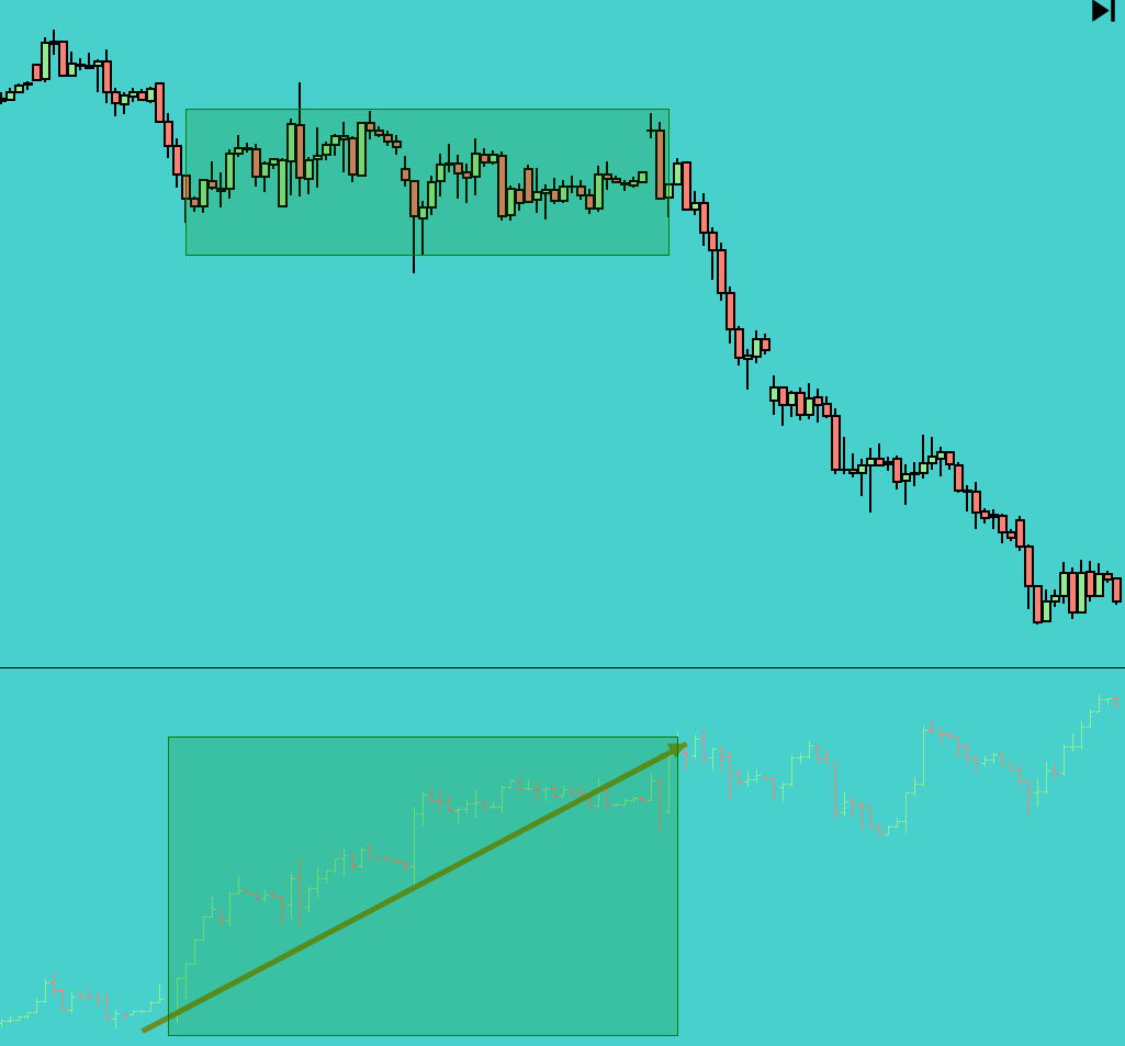 En cuanto al ejemplo que citas, creo factible ver el acumulado precio. De hecho hay traders que tras una vela de venta agresiva tienen opinión de si se va a producir acumulación o si se va a producir distribución. Supongo que no miras el volumen porque es muy complicado ver la intención del volumen. Pero ser capaz de leer precio y volumen, puede dar otra dimensión a tu trading. Dificil es, muy difícil.