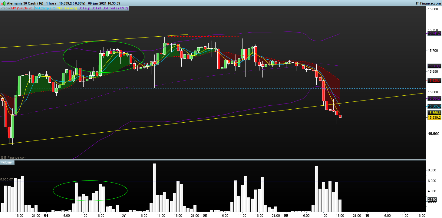 Es verdad que para temporalidades altas no miro mucho el volumen. El problema de temporalidades altas es que hay velas de muchos puntos y creo que hay que ver bien el detalle porque puede parecer una cosa y ser otra, por ejemplo en una vela martillo, y según sea puede indicar una cosa u otra, aunque la vela y el volumen sea exactamente el mismo.