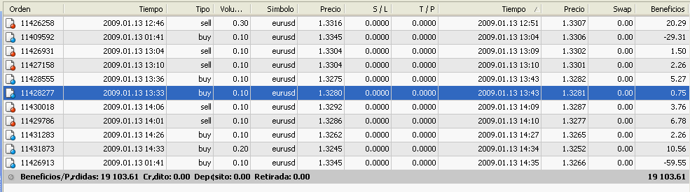La cosa que lo intenté defender con hedge y todo marchaba bien, pero en un mínimo de la mañana puse un stop de protección a la cobertura gorda que llevaba beneficios importantes, ya que tenía que salir sólo unos minutos. Al volver todo seguía igual pero olvidé quitar el stop. Hubiera sido interesante para que os pudiera explicar como deshago dos posiciones tan gordas a chinines y así controlo que no se me escape de las manos.
