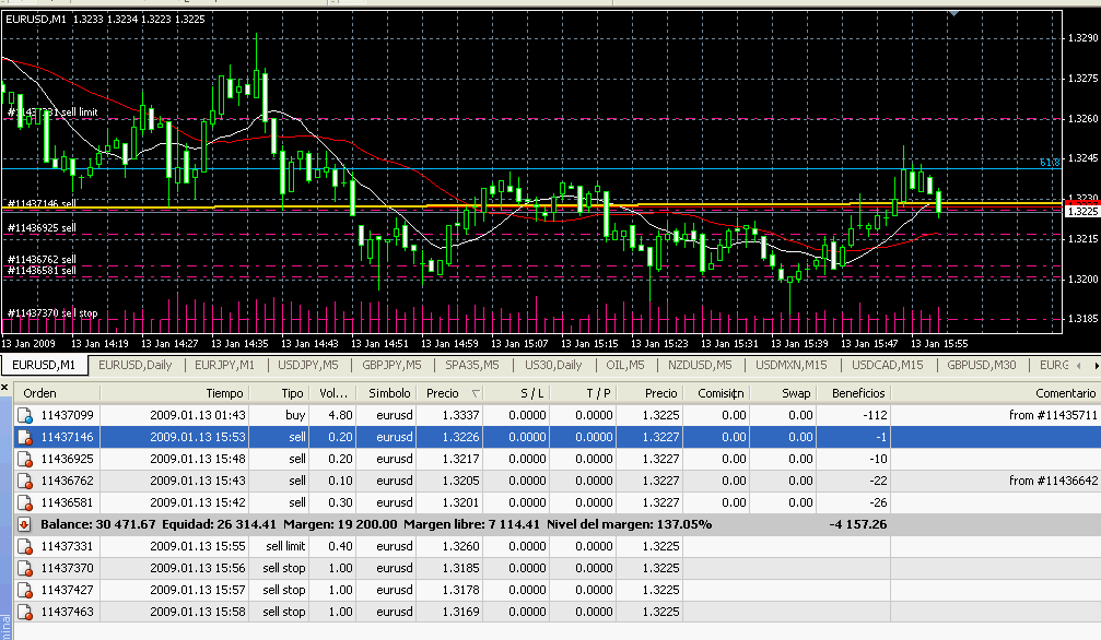 Lo de no hacer tonterias con pociones de grandes volúmenes ya lo he experimentado con resultados ampliamente negativos, y lo de no abrir posiciones contrarias con poca distancia he visto que el sistema entra en oscilacion y pierde por un tubo, pero estoy estudiando lo del martingaleo con volúmenes proporcionales a ver si sale algo positivo.