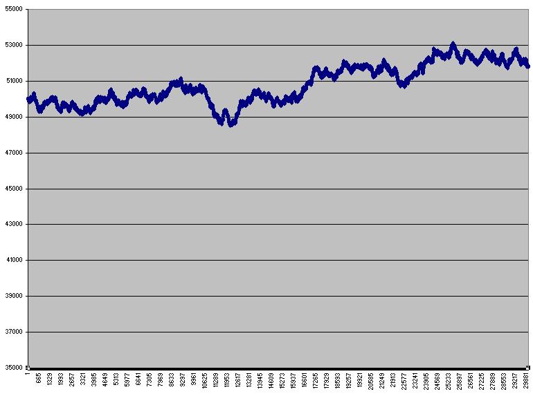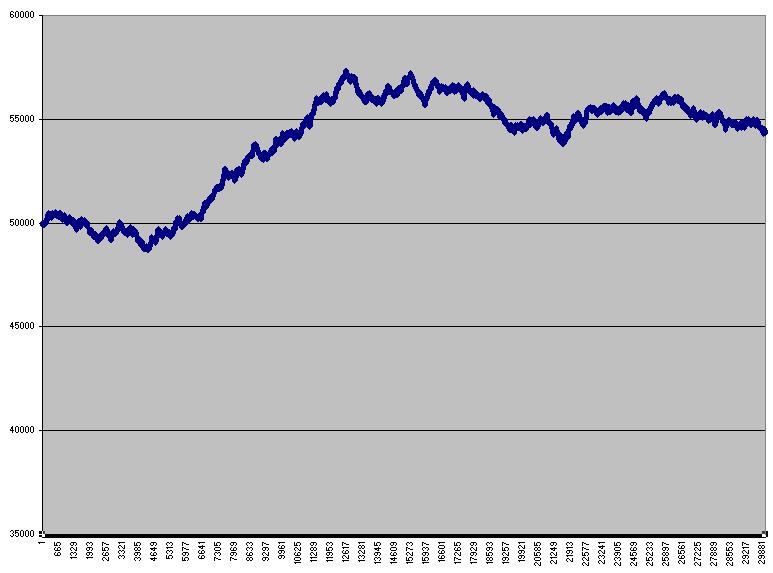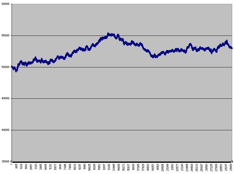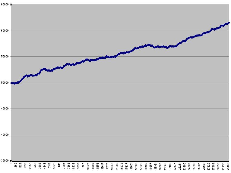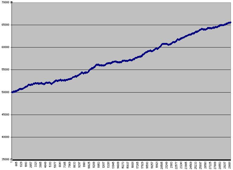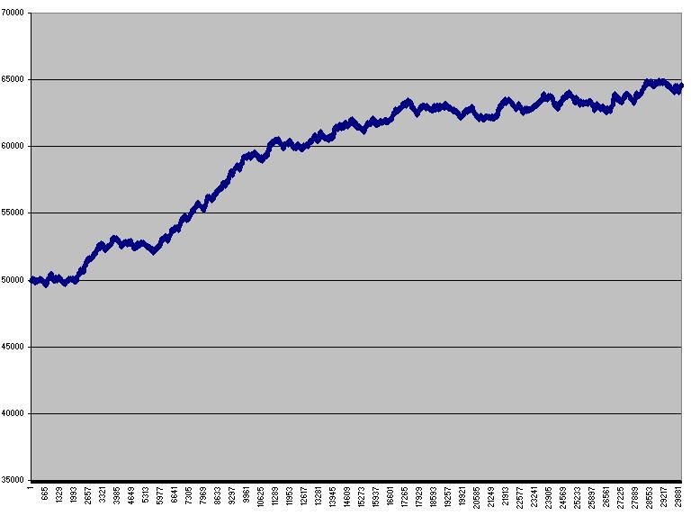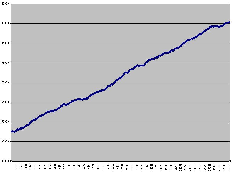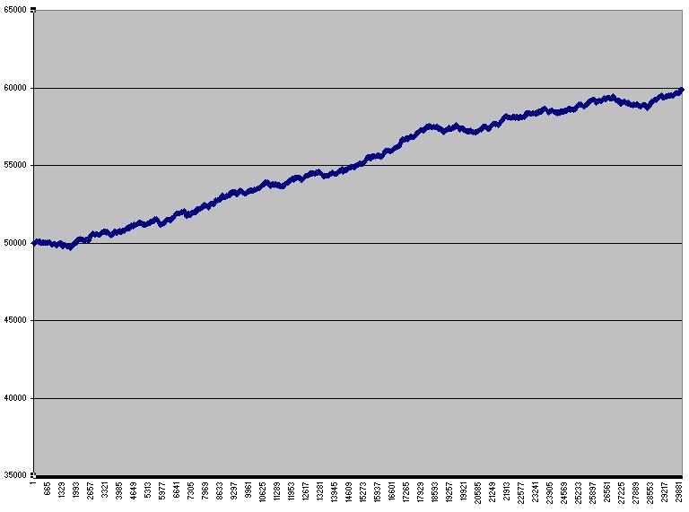 ¿ES sobre un mercado real o un mercado sintético?agmageton escribió:Bien un ejemplo tres espacios de tiempo, con entradas aleatorias a la probabilidad del 50% con stop o profic iguales. cada prueba con 30.000 operaciones.(sin poner comisiones)