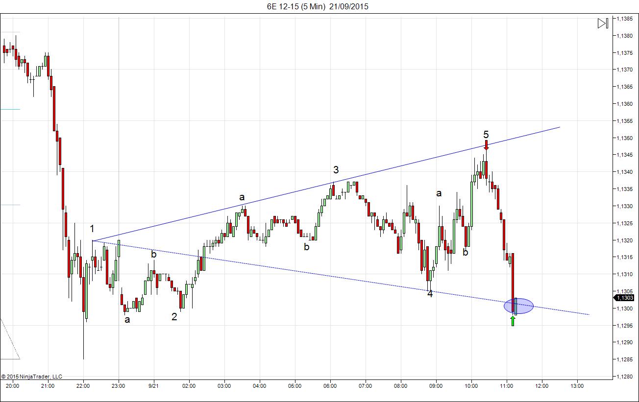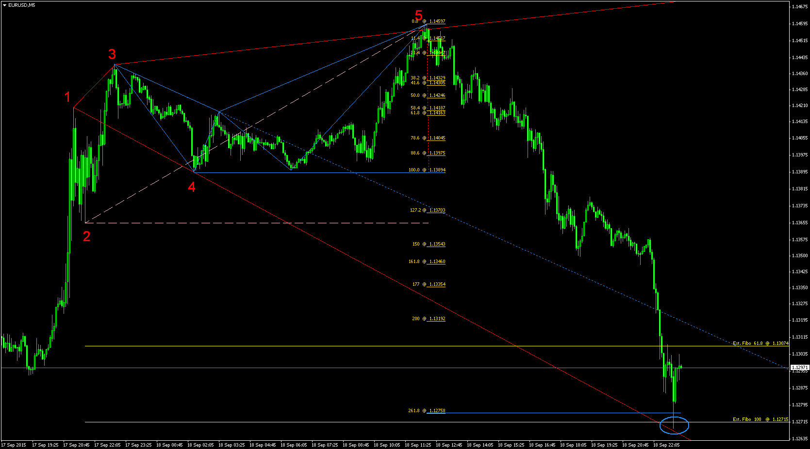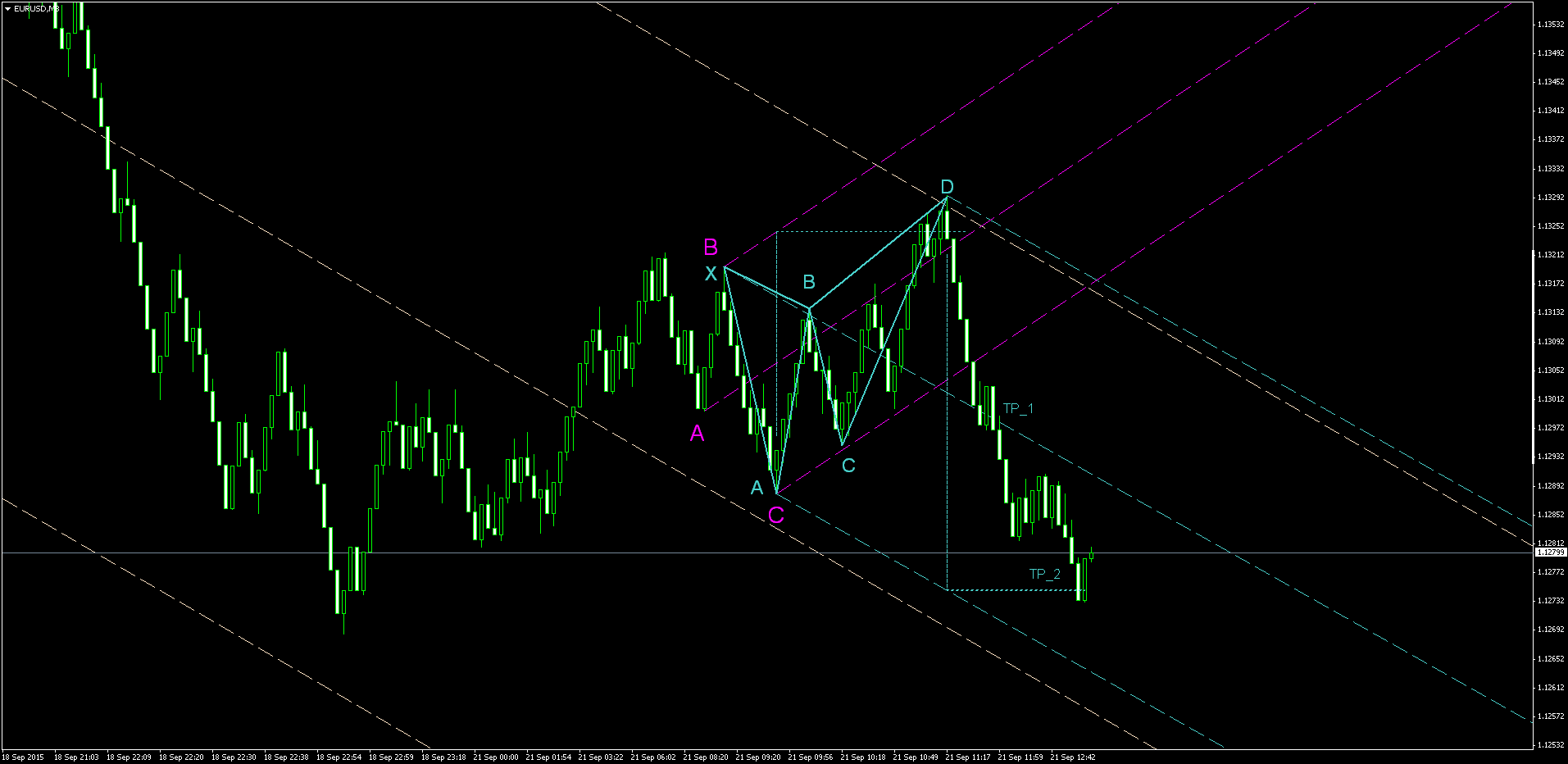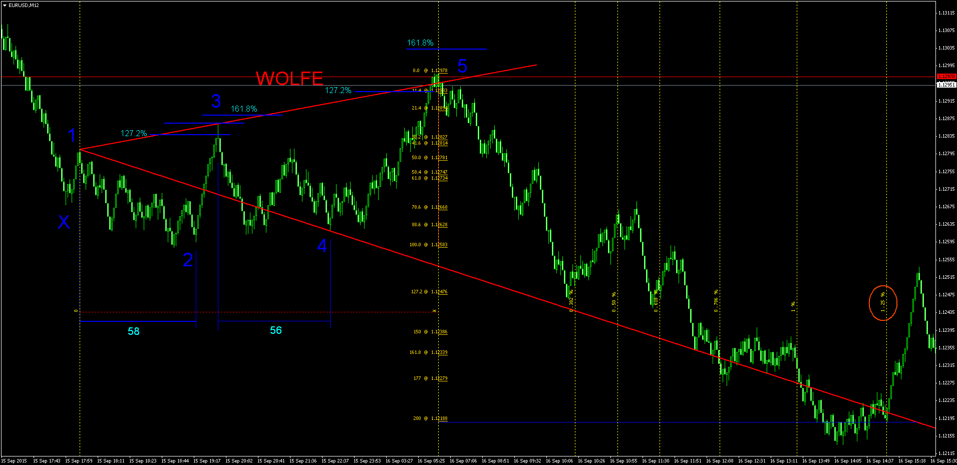 Pongo un gráfico de un Wolfe en diario, que no es más que una cuña alcista, pero claro no es lo mismo entrar arriba que cuando rompe la TrendLine, apoyado por un Butterfly bajista el cual refuerza el patrón y el recorrido