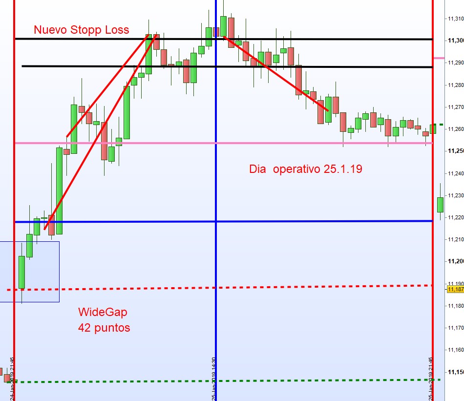 "Si entre las 08:00 y las 09:00 horas CET, la cotización no cruza ambos lados del precio de apertura del FDAX, es posible que sea un día de fuerte tendencia, en este caso, las operaciones de la primera y segunda zona se abrirán con la mitad de contratos que normalmente"