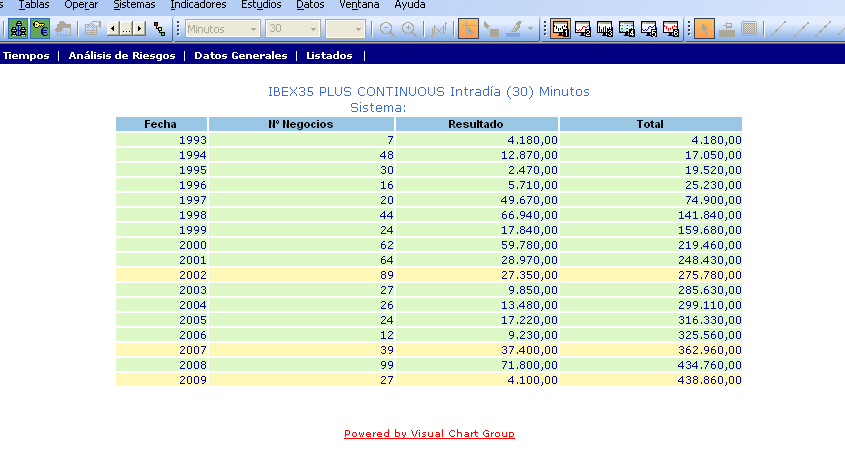 Los sistemas que utilizo suelen ir bien en los diferentes futuros sobre indices, pero en todos no puedo operar, de vez en cuando opero en el Dax. Y donde más a menudo opero es en el FIbex con este sistema y el de 60 minutos y días.