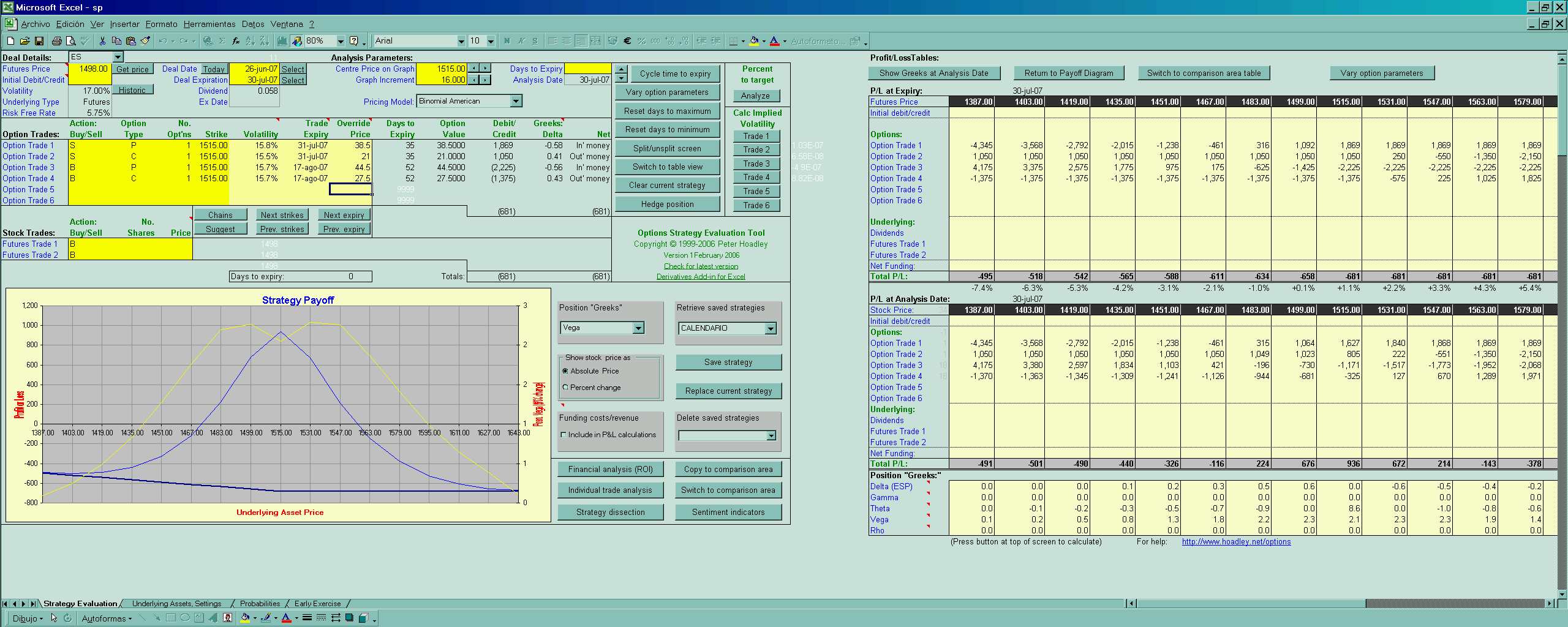 “Si la cotización actual de mercado para una opción está por encima del valor teórico de esa opción, esa opción se considera sobrevalorada. En teoría un trader puede ganar un ligero beneficio vendiendo opciones sobrevaloradas. Por el contrario, si la cotización actual de mercado está por debajo del precio teórico de esa opción, esta es considerada como infravalorada. En teoría un trader tomaría un ligero beneficio comprando opciones infravaloradas y vendiendo opciones sobrevaloradas.