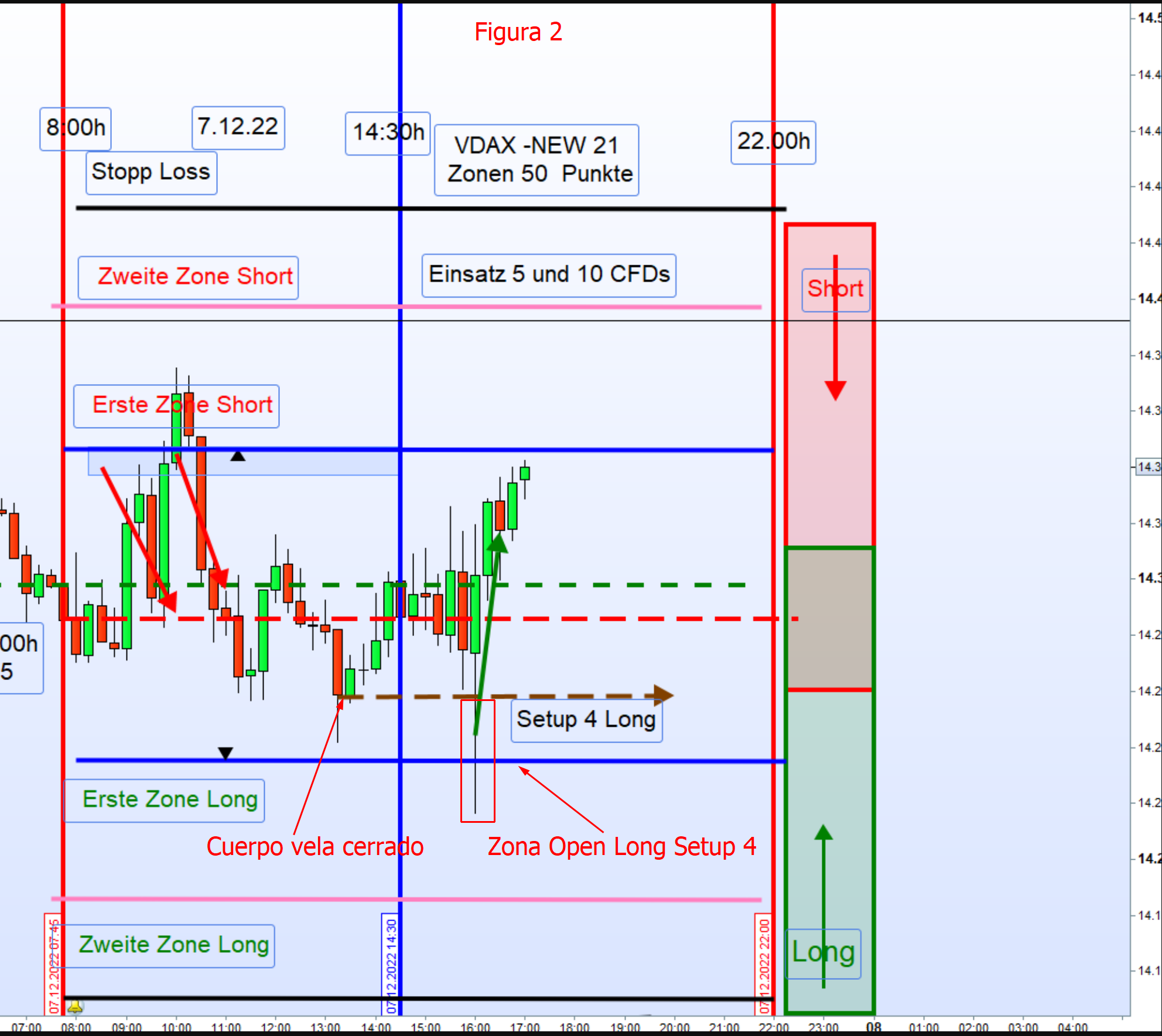 Si consultas los hilos de hace más de una década, donde Georg comenzó a contarnos sus experiencias, él esperaba a que se superasen 20 puntos la apertura o el cierre del FDAXy en ese punto abría una posición en la dirección de la tendencia, al llegar a las zonas esperaba reversión, si la había, cancelaba dicha posición y habría una en la dirección contraria, pero tendría que testarlo (backtesting). Voy a mirar sobre los días que llevamos analizados y os comento resultados,
