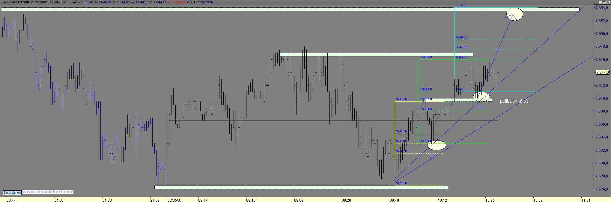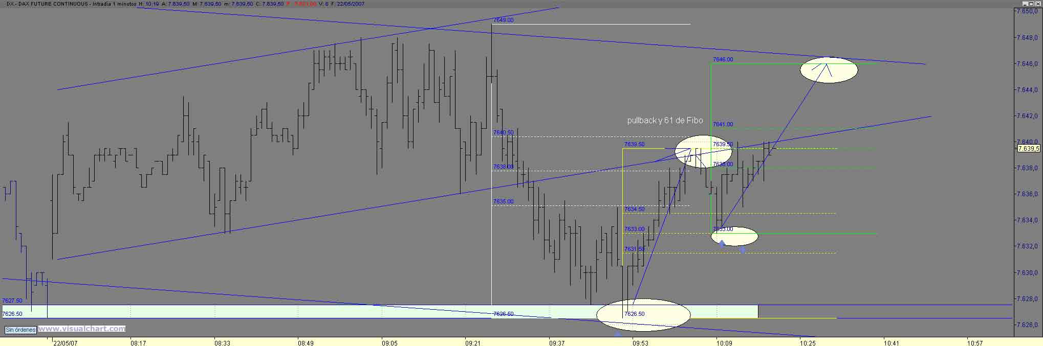 el 61 de Fibo de la bajada y pullback al canal y direztriz rota para poner cebo un poco mas abajo buscando que nos respete ese 61 del primer movt pico en 34 con obj 7646 noza de maximos intradiarios y de ahi si salta al 55 a estas alturas de dia ya tenemos para comer Saludos