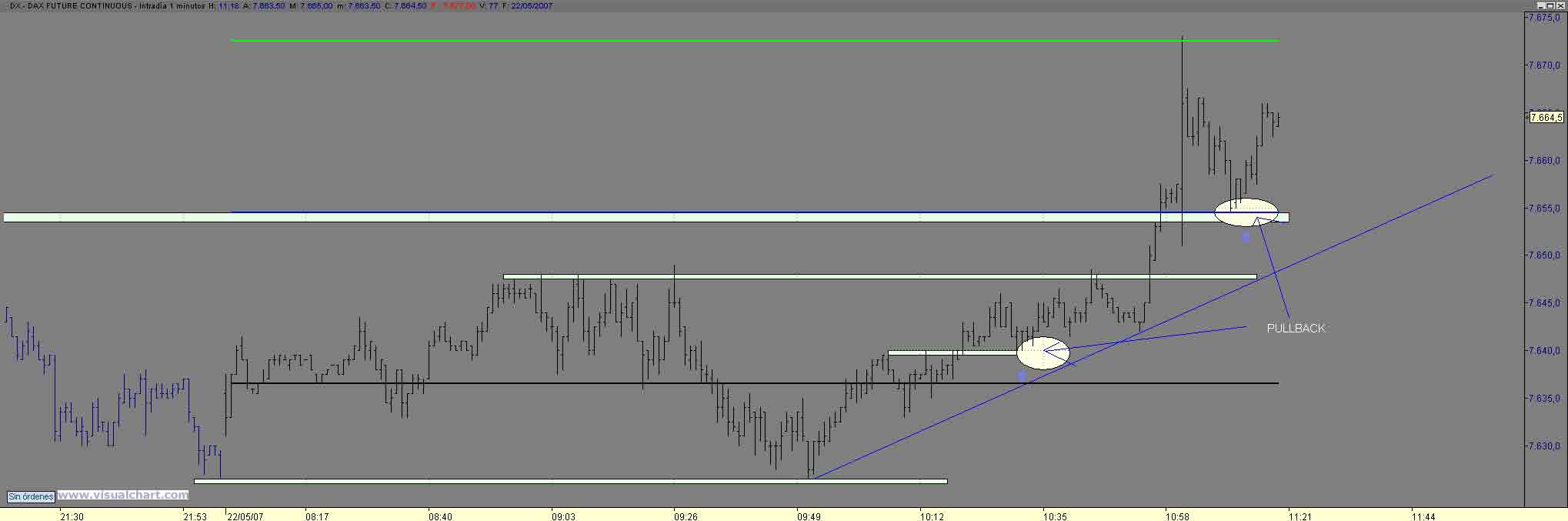 Tras el arreon Zewiano nos llevo al nivel R2 de pivot el 7672.50 para ir nuevamente a buscar el Pullback al nivel del 7655 donde volvemos a buscar los largos hasta el nivel del 61 de Fibo y si lo salta tendremos que seguir mirando hacia arriba , hasta donde pues , primero hasta el maximo anterior el R2 de pivot Saludos
