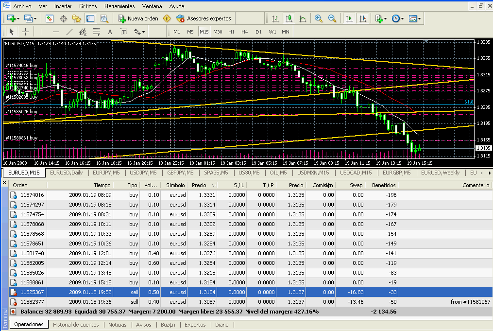 Ahora las posiciones que me molestan son las sell más alejadas que pierden unos 200 pipos.