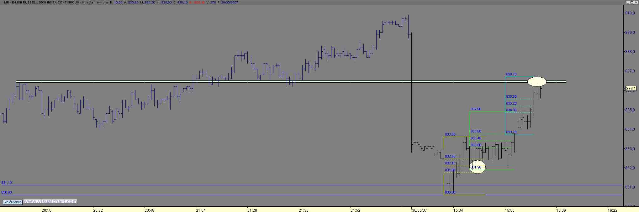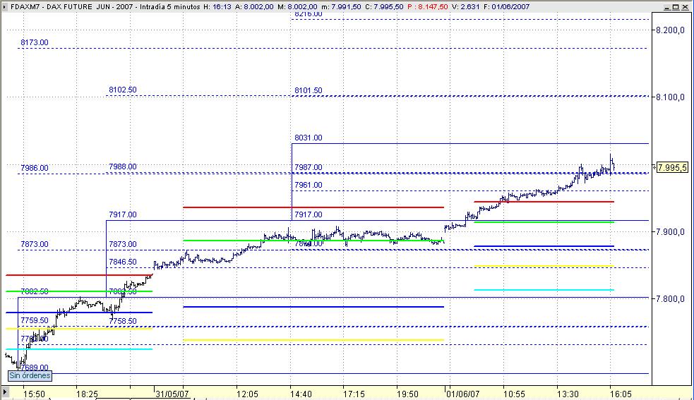 Esos cortos no llegaron al pivot pero algo sacamos al volver a la zona del crimen del 93 95 y nuevamente al tajo esos cortitos en esa zona y desarrollada en tres impulsos con obj de 3 el 69 proximos al 61 de Fibo del movimiento intradiario 7766 donde volvemos a intentar los largos con obj 88 y desde ahi a esperar la apertura USA y la noticia de las 16 h el I. de Michigan Saludos