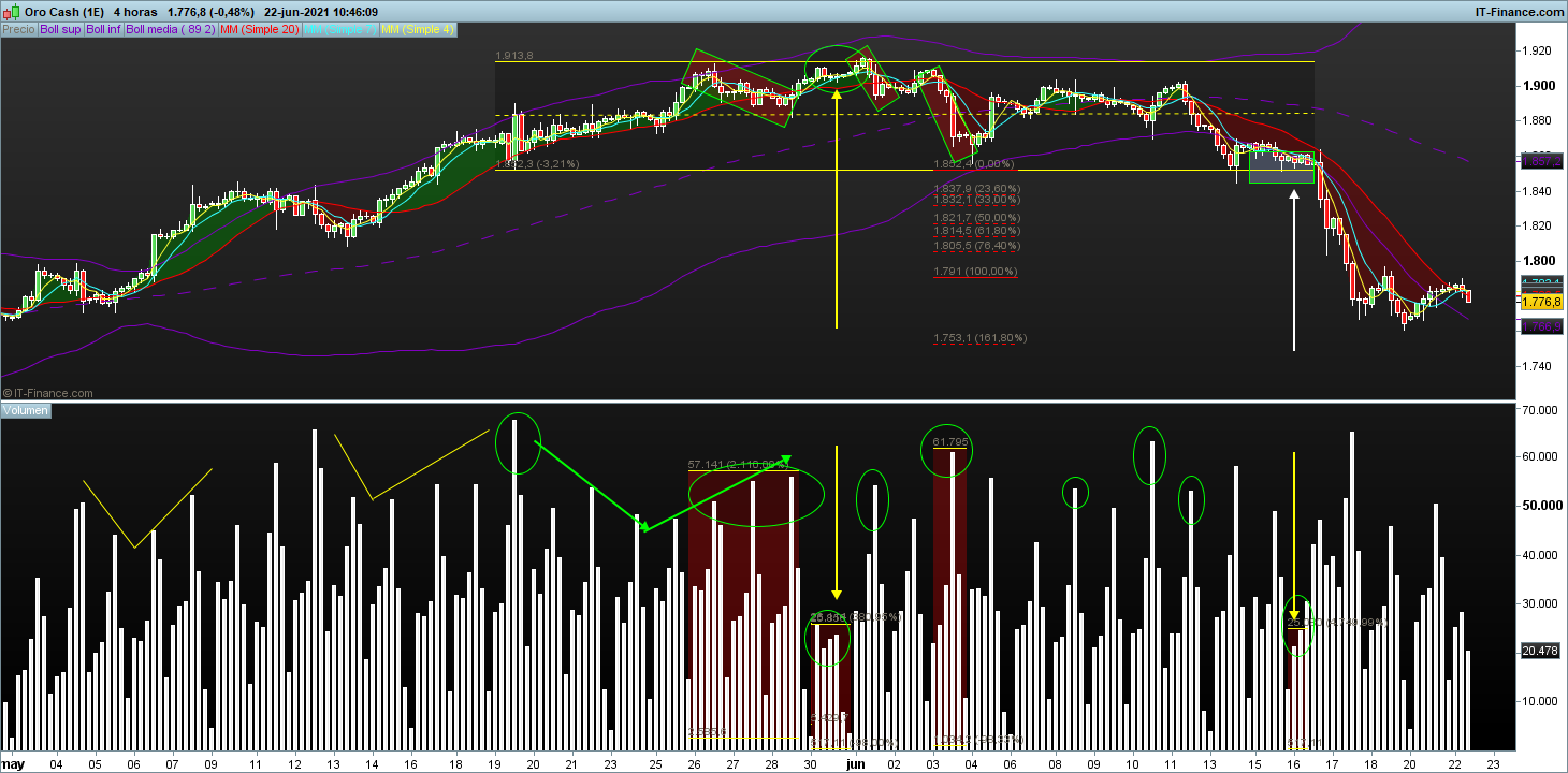 mirando la grafica que has mandado del oro, lo que entiendo es que el volumen debe acompañar al movimiento, si no acompaña, primera señal, si hay divergencia segunda, si hay secado, las mejores oportunidades
