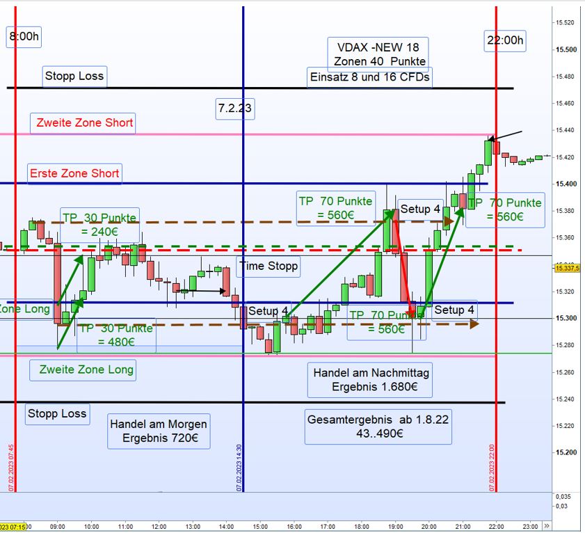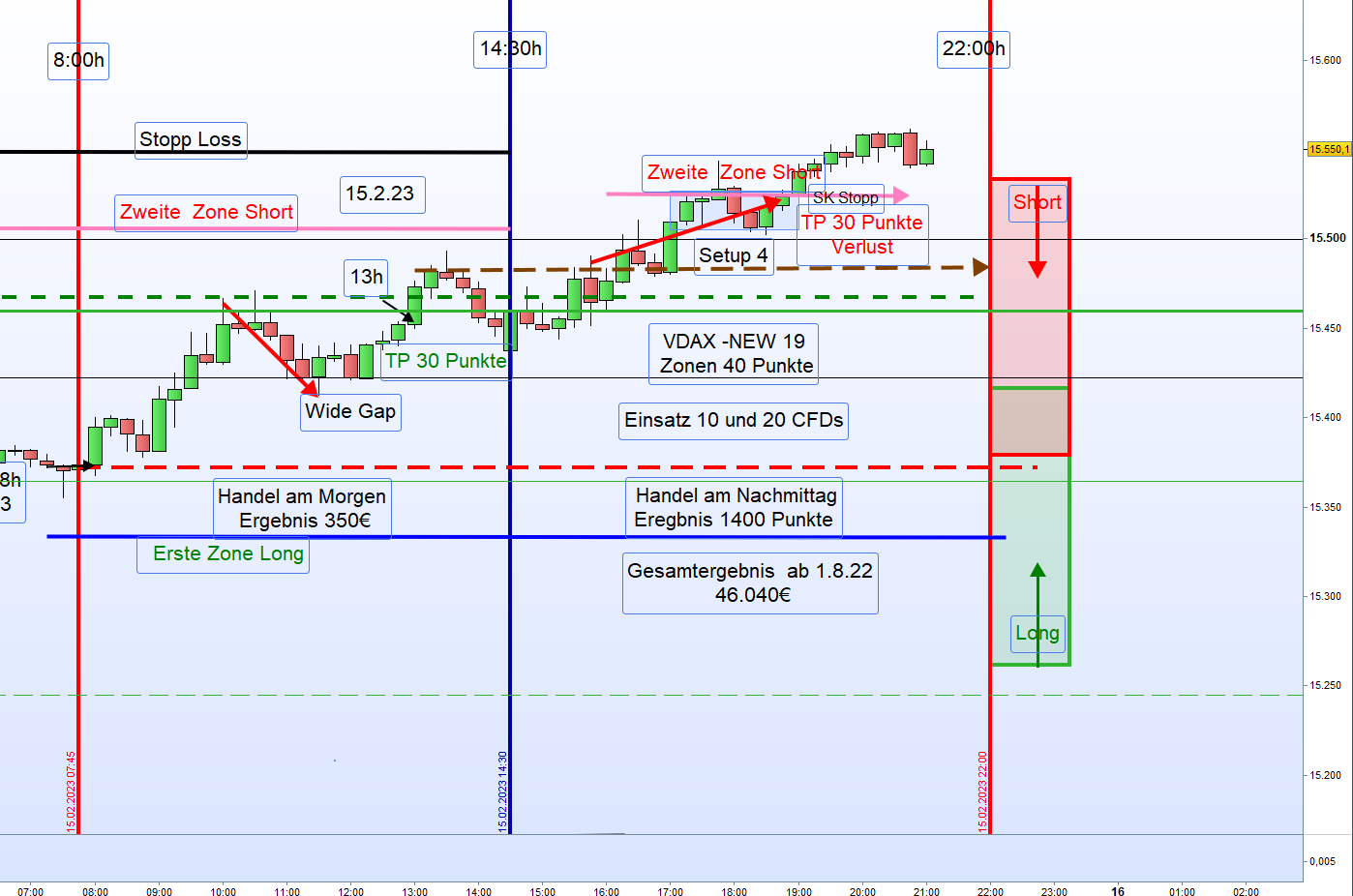 buenas Elarvi, parece ser que George Ha cambiado la regla del doble gap...al final después de tantos años da un poco igual pues ya conoces bastante bien el Dax, pero bueno, creo que ahora nos fijamos en la vela de las 9, como está por encima del precio de apertura y es un gap bajista...dibujamos las zonas largas normales y la primera corta es al doble de una zona.elarvi escribió: 12 Feb 2023 11:57