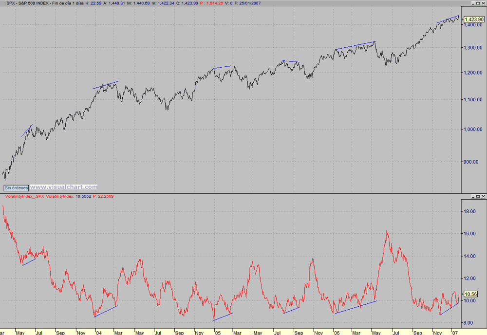 Y otra cosa,los graficos te dicen muchas muchas cosas, eso de que cuando haya correccion ciertamente severa no se vera, pillate un historico y simplemente con el precio con secuencias de minimos crecientes semanales o diarios, segun el horizonte temporal alguna idea te dara, tambien mirando el RSI y las medias moviles...pero claro si aqui vamos al tuntun,esto es lo mismo que la loteria.Y si no esperate a que la bolsa baje de verdad pq un servidor sera de los que ganaran con los cortos.