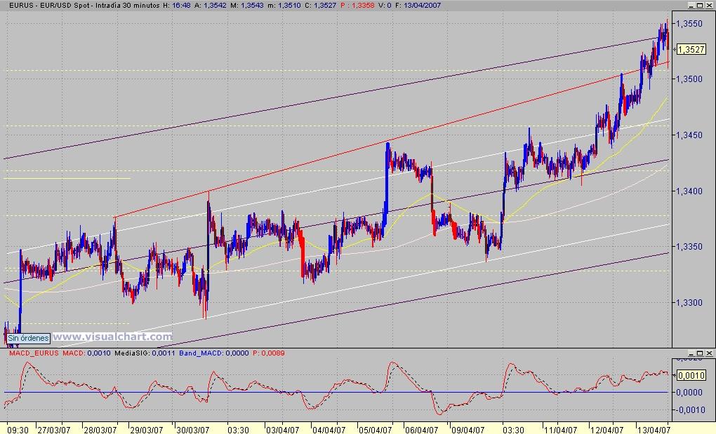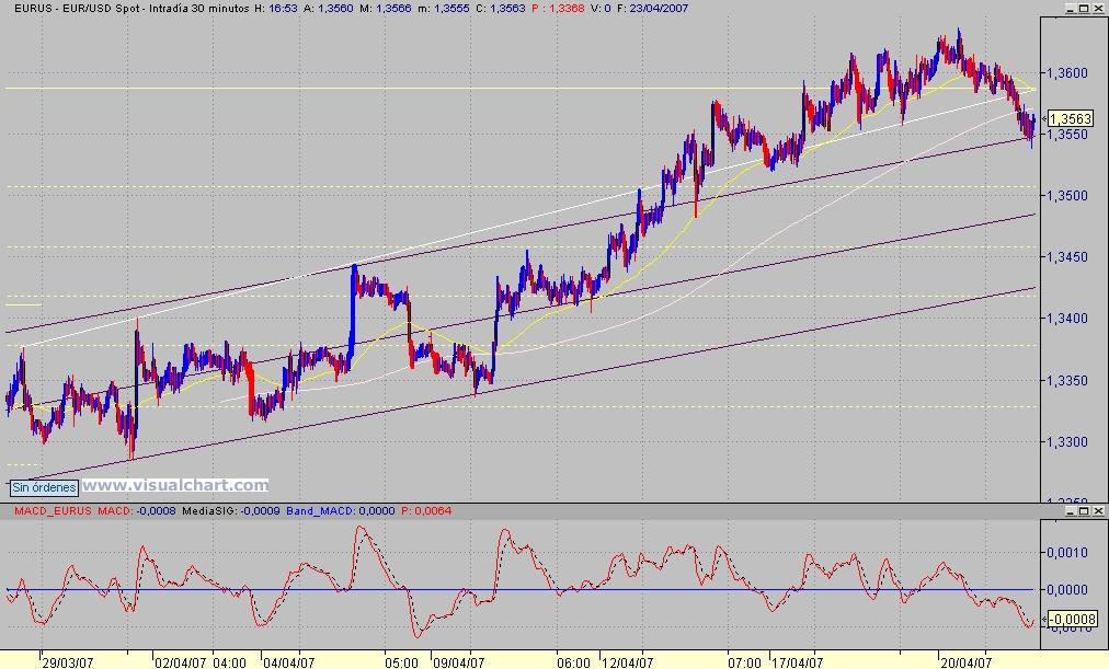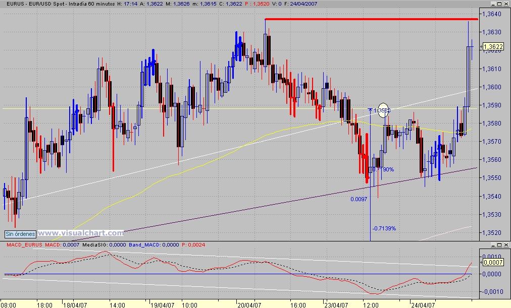 yo creo ke podría reposar un pokito mas y descolgarse hasta el 1,3500 - 1,3510, y ahí a ve ki pacha , especialmente si no es capaz de mantenerse sobre el 1,3590.