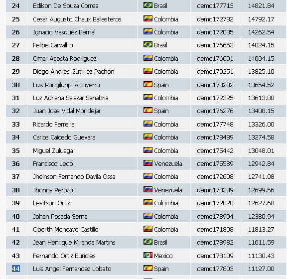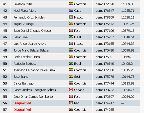 La lucha por la victoria está siendo de la más bonitas que recuerdo en un concurso de IFC. El argentino Sosa estaba hace dos horas en el primer puesto, pero el portugués Moreira ha dado un zarpazo de los buenos y se ha vuelto a colocar el primero y en medio el Colombiano Armando Peña que está luchando encarnizadamente. Al acecho otros dos argentinos aunque estos parece que están mucho más conservadores.