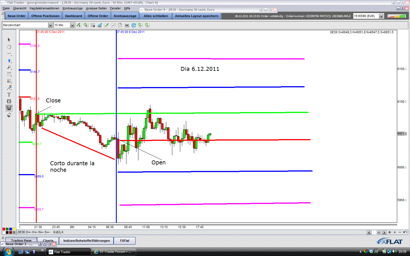 ) Aquí mando una imagen de la apertura de hoy aplicando las condiciones de george con cierre y apertura día posterior de FDAX y aplicando los márgenes en función de VDAX al cierre de ayer. Repito, es solo un esbozo de lo que he podido sacar del documento en alemán. Las zonas de color es el nivel de entrada para largos/cortos.