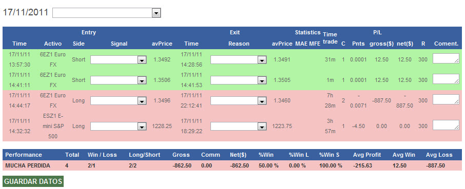 Hola, aquí os dejo el link con los trades de hoy... mañana complicada en el euro que solo una buena gestion de la operativa me ha permitido salir con beneficios. También he incluido un trade en el mini sp porque es de ejemplo de libro.