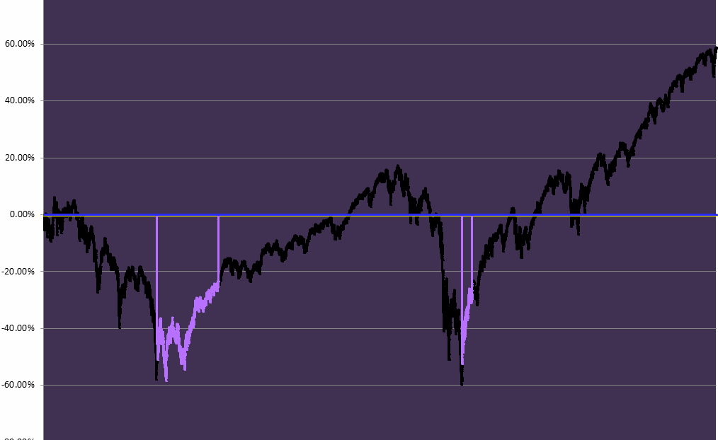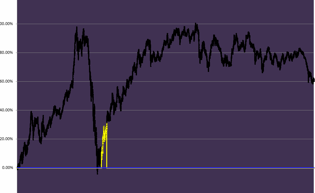 No tiene sentido porque haces un "razonamiento inductivo" a partir de una muestra sesgada y además insuficiente, y es que hemos tenido mercados seculares bajistas de esa magnitud de años. Y para más INRI hay que contar con los cisnes negros.