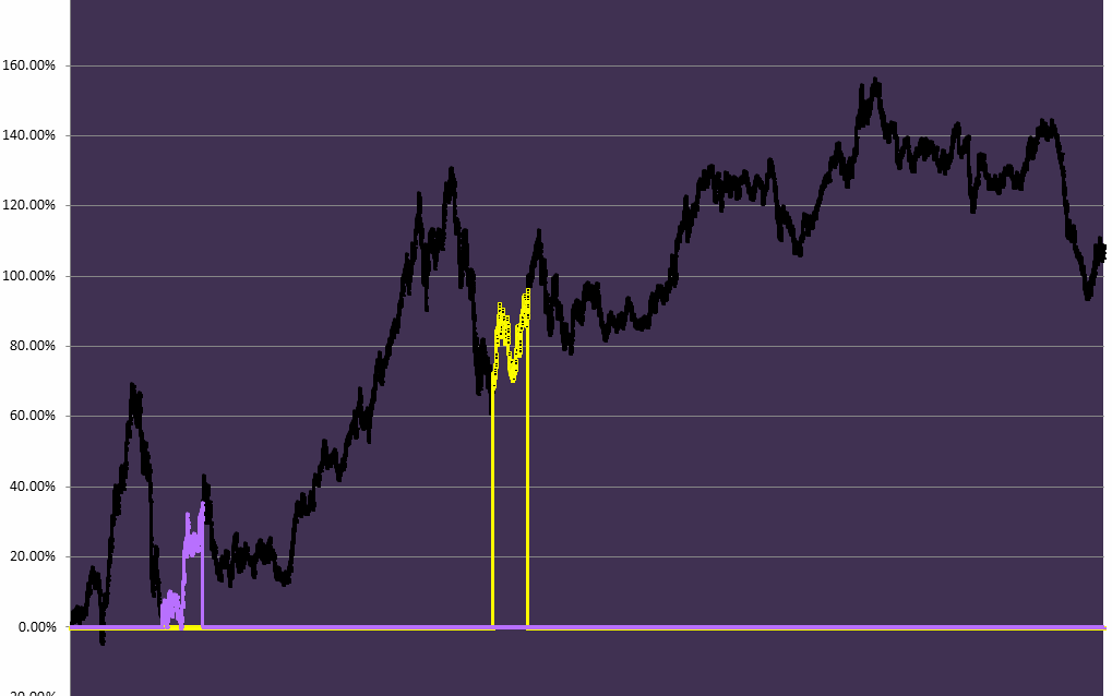 Esta pregunta no tiene sentido, imagina que tienes delante lo que sea, da igual tu no te mueves por impulsos del momento, aquí ahí un estudio muy concienzudo detrás que te determina unas zonas a aplicar tu arsenal operativo, y solo contemplas 3 estados con todos los activos que tu desees y son en timing (posibilidad de operar) en mercado (subido a una posición), o fuera de mercado. Claro también abría que explicar que esta estrategia de ejemplo que no es válida para aplicarla anualmente, si no estas operando con acciones (dado el universo de más de 10.000 acciones que hacen que una proporción pequeña cumplan el objetivo anualmente) en activos tipo futuros, tienes una media de suelos de 5 años, por lo que es una estrategia de media para cada 5 años...pero hay otras estrategias con los mismos principios que se pueden aplicar y de menor dificultad.