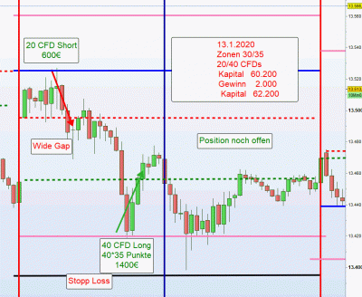 La detección de los días de tendencia y el procedimiento correspondiente lo explico en vtad.de/wp-content/uploads/201…-strategy_award_2011.pdf. Observando a las 8: 00h el DOW FUT (DJIA FUT) con 0.5% en más / menos y las bolsas de valores asiáticas, China y Japón, también cerraron con 0.5 más / menos, inmediatamente consideramos la entrada larga / corta si hay catalizadores en forma de noticias positivas / negativas de la noche a la mañana."
