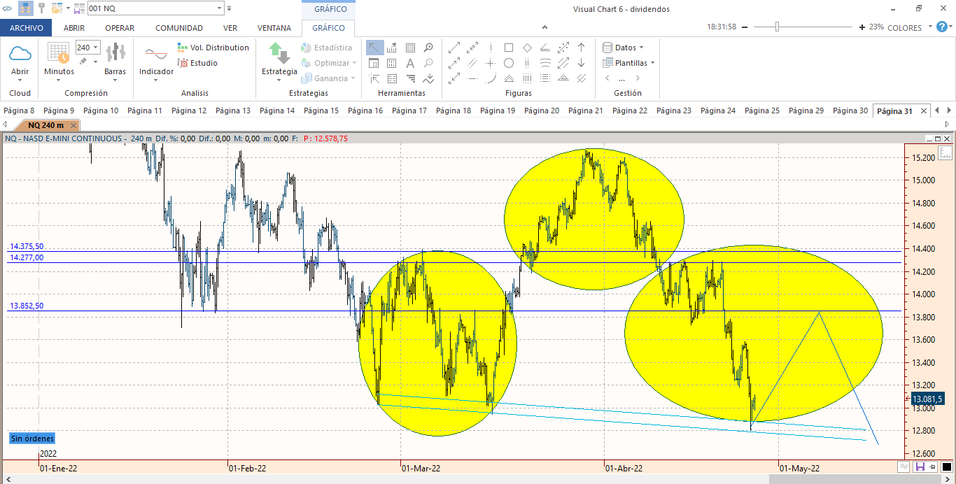 Estoy pensando en estas alternativas en el nq y sp, si se dan estoy jodido con las posiciones actuales.