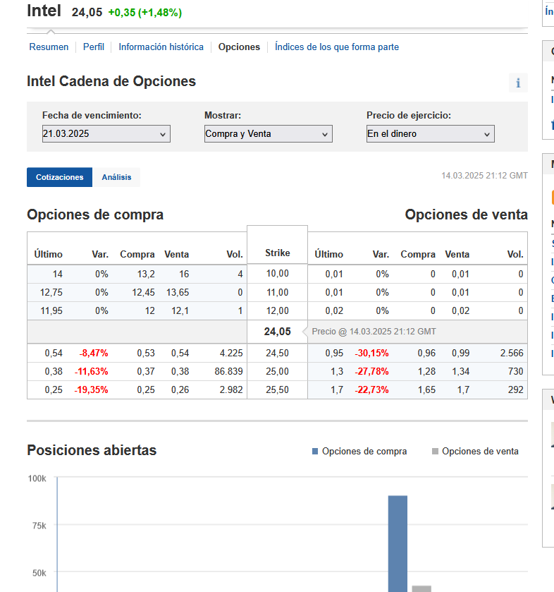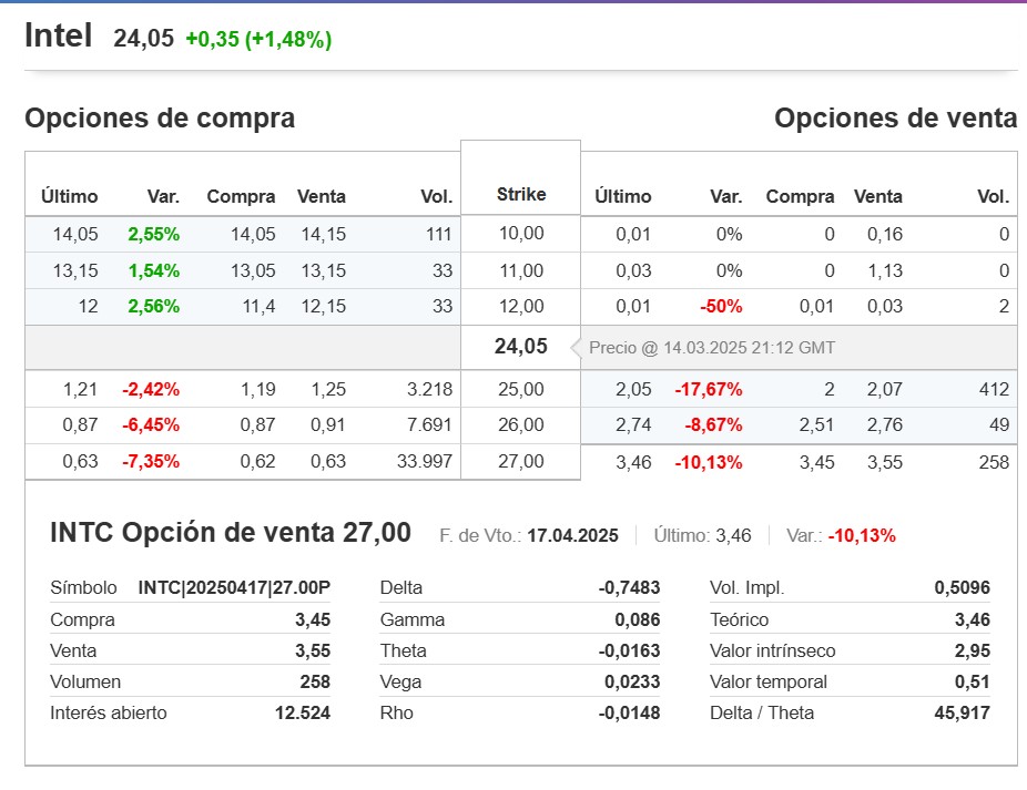 Esto no lo acabo de entender, ¿cuál es el valor extrínseco para ti de esta operación?PAULOKO escribió: 16 Mar 2025 00:01 Me sitúo bastante ITM, pero con el suficiente valor extrínseco como para estar, por ahora, lejos de ser asignado. Ingresé $2.05 por acción.