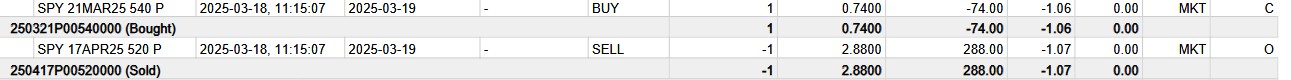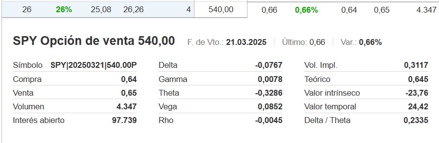 Al final, en el SPY tengo un put vendido el 10/03 en 540 con prima de 448 $, pero por ahora no me interesa ser asignado. Veo el mercado un poco perdido.