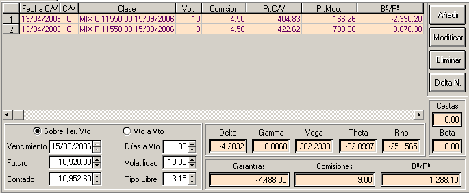Así pues tengo que conformarme con los consejos de Bernardito y puesto que el precio ha bajdo y la volatilidad ha subido, me dice que debería transformarla en PUT comprada, vendiendo la CALL.