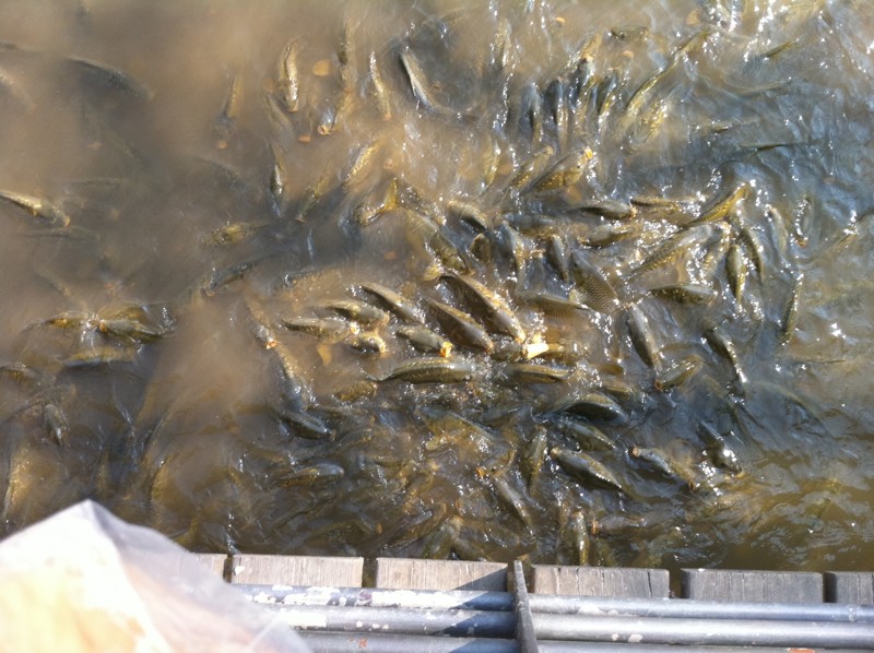 Como la Naturaleza misma Gofio y compañía, esto de los mercados es como la propia Naturaleza. En esa foto, no hay red de ningún tipo, ni nadie los obliga, la saqué este sábado en La Grajera, mirar lo que hacen las carpas por un trocito de pan.