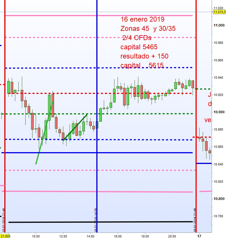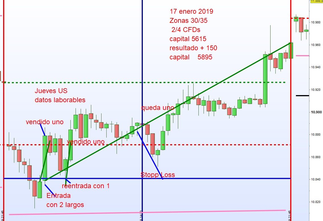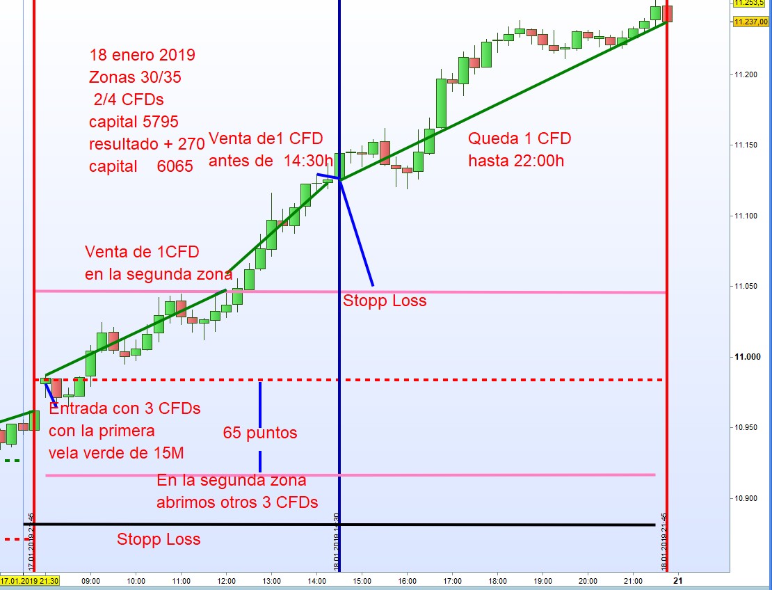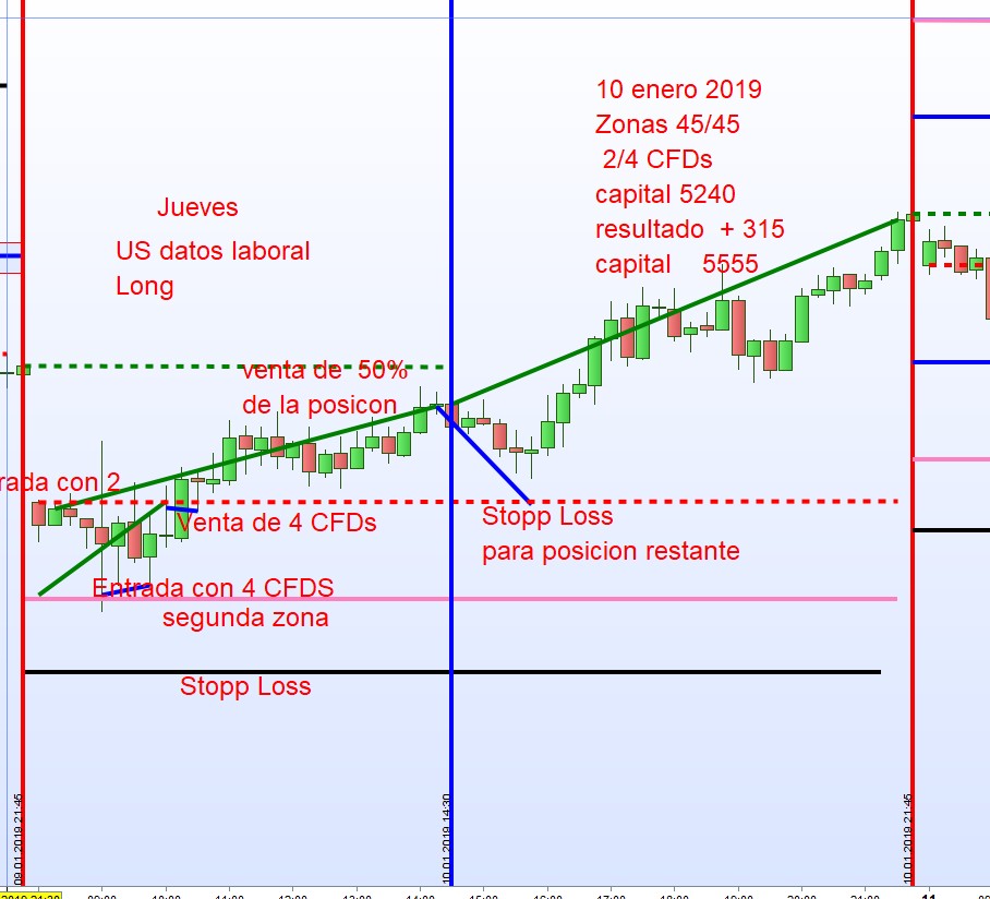 Per regla general: No se opera dicha regla el juves que precede el primer viernes del mes, si el Wide Gap cotiza mas de100 puntos en perdia y si los DJIA FUT cotizan mas de 2% en perdida. La primera entrada se hace con la primera vela verde despues de la apertura. Si la entrada es realizada bastante debajo de la apertura vea grafico del 10 de enero con ventas y reentradas. Todo interesado apunta estas reglas y hace copias de los graficos. No voy a repetirlo todos los Jueves :D