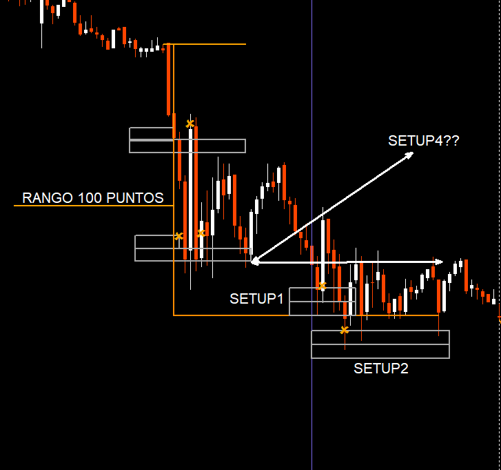 Entonces ayer por la tarde tuvimos setup 1 ya que el rango de la mañana no supera los 100 puntos y también setup 2 es correcto?, no se opera setup4 ?