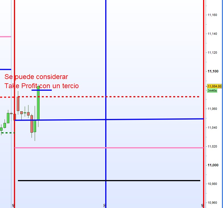 Se puede considererar de take profit con un tercio de los contratos.