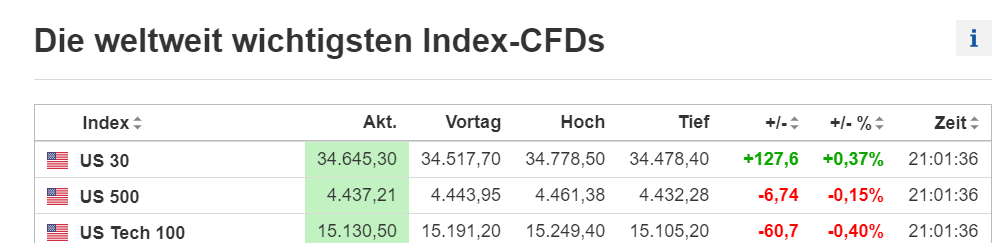 Ejemplo de hoy: Los FUTERES del DOW estaban ligeramente a la baja en la apertura del mercado estadounidense a las 14:30, nuestra hora.