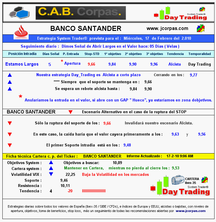 SANTANDER ESTRATEGIA PARA EL MIÉRCOLES 17/2/10