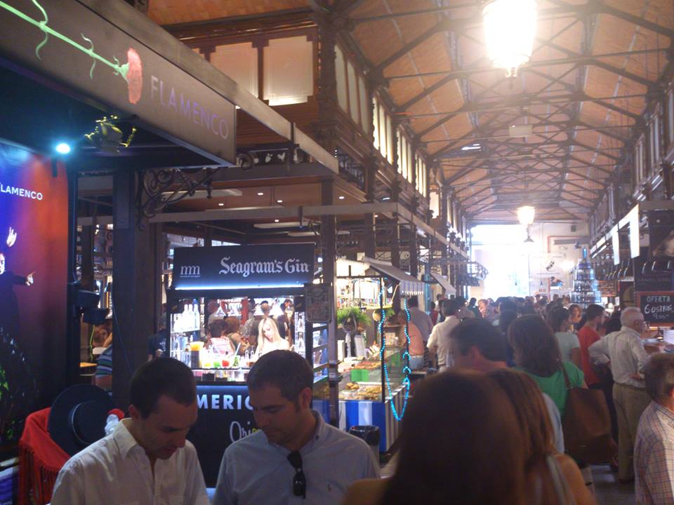 Por la tarde nos fuímos de copas y tapeo por el centro de Madrid. Primera parada en un sitio fundamental si os gusta la gastronomía: el mercado de San Miguel, un mercado tradicional en pleno centro de Madrid, al lado de la plaza Mayor, que ha sido reconvertido en un espacio gastronómico que se centra en los productos de gran calidad y de temporada, con la ventaja de poder probar in situ lo ofrecido acompañándolo de un buen vino.