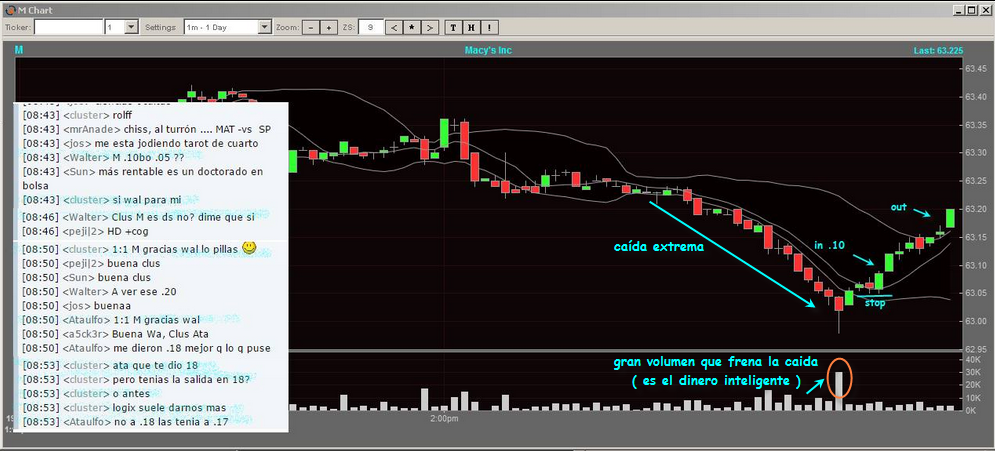 En la captura, esa caída extrema solo puede ser la masa asustada, y ese aumento de volumen son las instituciones frenando la caída. ahí, ya sabemos, que los "pro" no quieren precios mas bajos, y absorben toda la oferta, porque solo ellos pueden comprar tal cantidad de órdenes, y ahí estamos nosotros, los que operamos Tape, o cazadores de suelos, para pillar el largo junto con las instituciones.