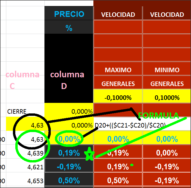 "valor anterior+((cierre hoy-cierre ayer)/cierre ayer)